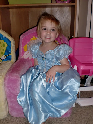 Mallory does NOT want to be potty-trained. She still wants to "be a baby." It's kind of frustrating to buy diapers for her still, but I'm not pushing her. I know when she wants to do it, she will. Period. She loves her baby Belle and is constantly in a princess dress. (lately it's been a white slip that I literally can't get her out of. She wears it night and day!)